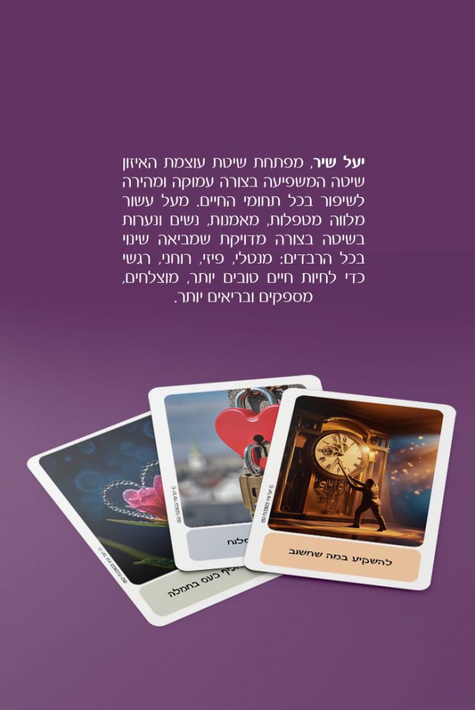 נעים להכיר אני יעל שיר, אמא ל5 , מעל עשור מלווה נשים ונערות בסדנאות, שיעורים ומפגשים אישיים בשיטה שפיתחתי :"עוצמת האיזון", שמביאה אותן לצאת מחסימה ותקיעות להגשמה ומימוש עצמי.